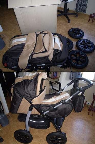 szajs jak nic, po pierwszym spacerze mialam go dosc... po miesiacu szukalam nowego w pl i powiedzialam sobie ze nie wydam wiecej jak 500zl, no i kupilam nowy wozek za 399zl :-) i uzywamy go to tej pory i jest nie do zajechania, ma super duze popmpowane kola i co najlepsze mala jezdzi do tej pory w takiej jak by gondoli i mam spiworek wlozony w srodek. Bo dla noworodka wklada sie tylko torbe do srodka a pozniej jest taka duzaa godola z zakrytymi nozkami, pasami, podnoszonym oparcie, to na nozki mozna zmenic na palak i tak jezdzilam latem