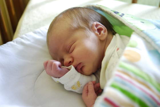 Różek nam służył do spania na boku - tu Aniela jak miała 2 tygodnie: