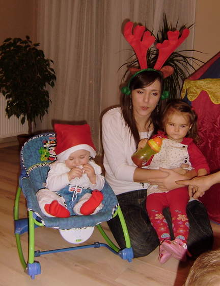 Teściowie byli trochę zmieszani kiedy my daliśmy Omarowi (synkowi siostry M) zabawkę i zaczęli coś kręcić że przecież są Święta i będzie jeszcze okazja. Lili dostała prezent od nas, od moich rodziców (chodzik-pchacz Fishera) i od mojej babci stówkę (zawsze głupio mi od babci brać, bo oni i tak ledwo się wyrabiają z emerytury płacąc horrendalną kasę za leki), ale wiem że to dla niej radość
