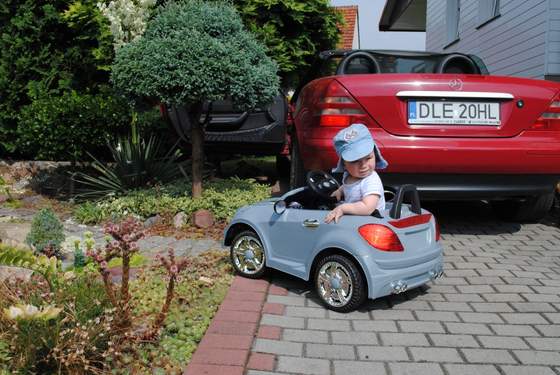 Szym wczoraj dostal taczki,myslelismy ze bedzie sie nimi bawil ale dooopa,chwile sie interesuje i dalej biega....jak [poslzam z nim na podworko to lapal za duze taczki to teraz ma male