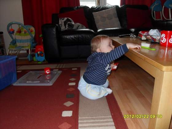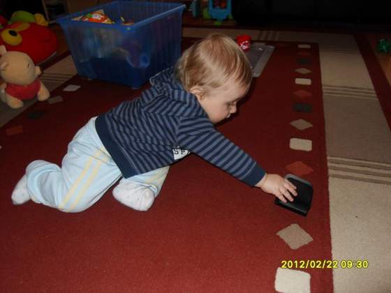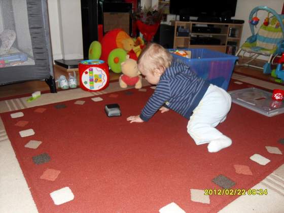 Do tego Matt podsunie się czy to na brzuchu czy na pupie albo turlając się wszędzie gdzie chce a najczęściej chce blisko kanapy lub stołu i się wspina więc już nie mogę go na moment z oczu spuścic