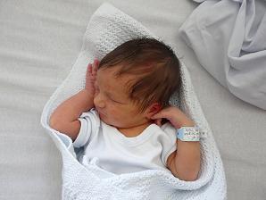 misia cuprynka naprawdę bujnaKa..M- nie sugeruj sie zgaga co do czuprynki malenstwa! Ja w zyciu zgagi nie mialam..nawet nie wiem co to za uczucie...a Alex ma od urodzenia bujna grzywe:-) Jak malpiatka wyglada:-) Na dowod fota, dzien po urodzeniu.