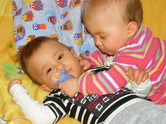 Witam społecznie maluchy są rewelacyjnie rozwinięte.Ruchowo gorzej ,jeżdzimy na rehabilitację i państwowo i prywatnie .W styczniu mamy 18 wizyt łącznie już wysiadam.Dzieci jeszcze nie siedzą,ale Marcelka pełza i chyba Jasio zaraz zacznie.Niestety laska jest bez ząbka nadal.Jasio za to ma zapalenie dziąseł.Maluchy odstawiły jakiś miesiąc temu butle i jedzą tylko łyżeczką.Same tak zdecydowały koniec z butlą i nawet picie z niekapka ciężko przechodzi.Pozdrawiamy ciocie nasze i buziaki ślemy.