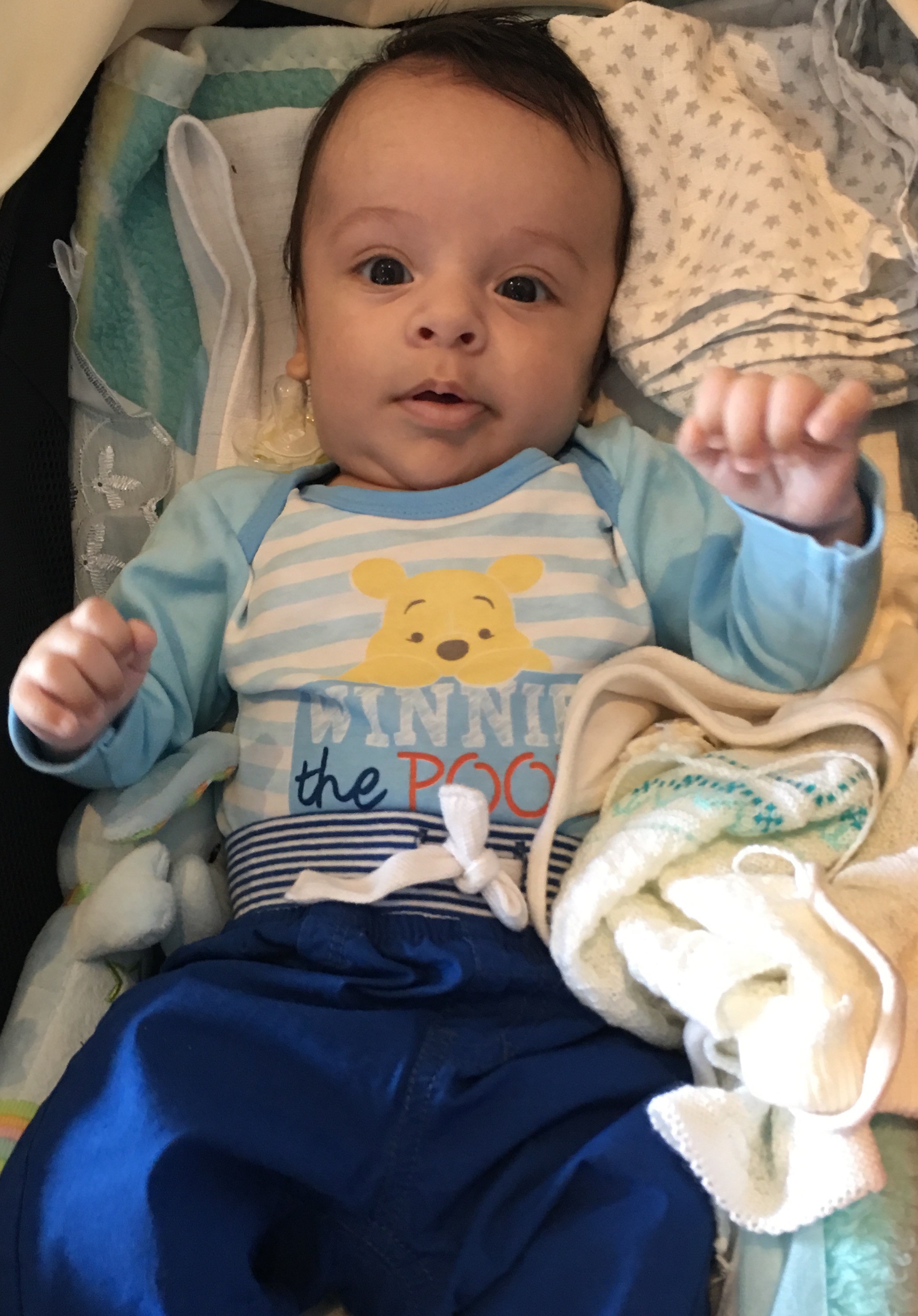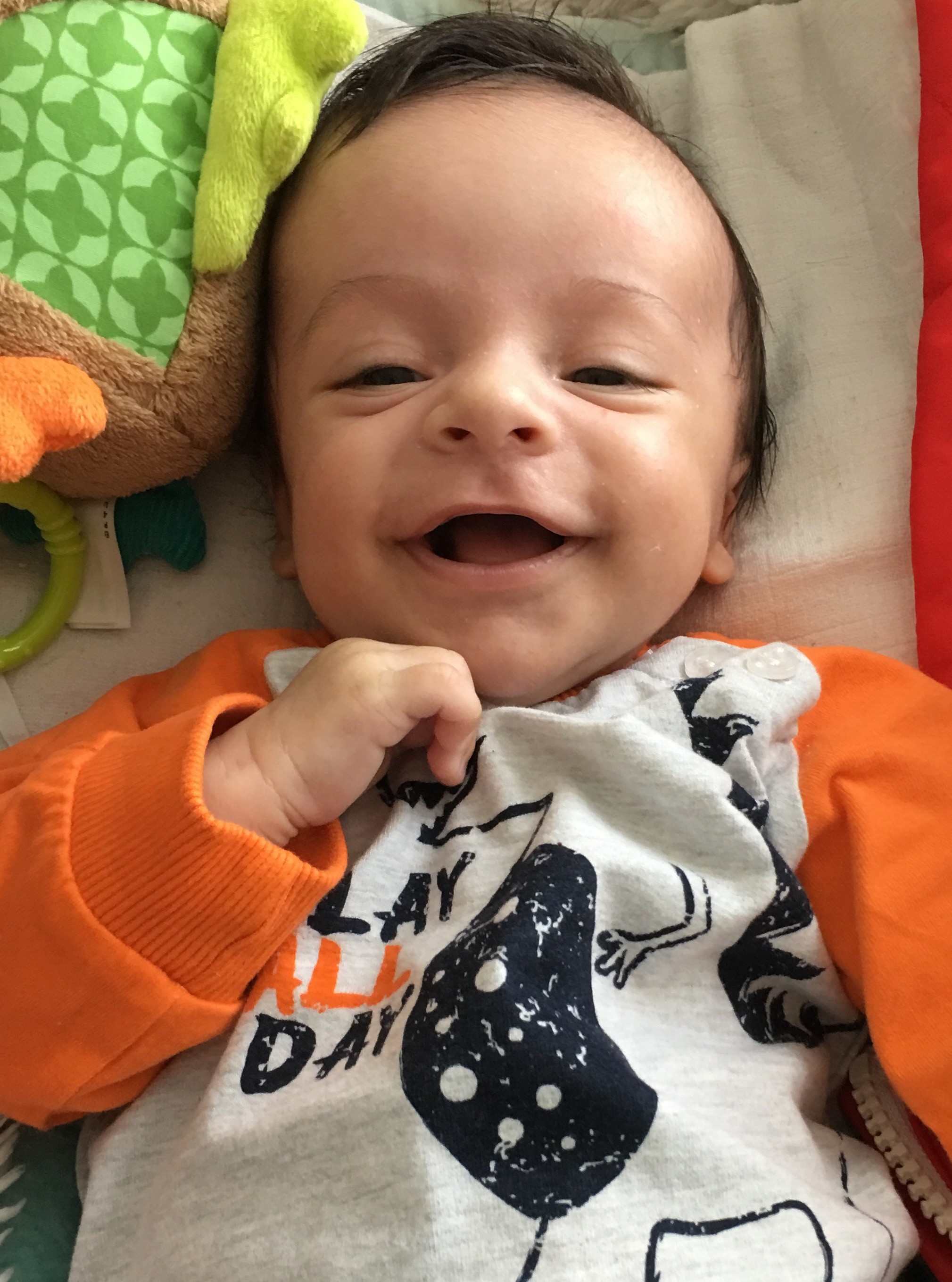 Mój mały jeszcze w tamtym tyg potrafił obudzić sie w nocy głodny to na raz zjadł 180ml. I tak może było z 4 razy, ae od tamtej pory zjada po 150ml i to nie zawsze czasem zostawi 10 czy 20ml...a rozwijać to tez sie pięknie rozwija...dziś po pobudce leży i patrzy na mnie tymi dużymi brązowymi oczami a tu nagle oczko mi puścił. Wczoraj byliśmy na szczepieniu...mam bardzo odważnego aniołka... płacz był taki ze aż sie zanosił ale tylko w momencie ukłucia...dosyć szybko sie uspokoił jedynie później w domu jak sobie przypomniał to był płacz. Dziś jakoś ok 8 miał stan podgorączkowy...jakoś 37,6 ale dosyć szybko mu to zeszło...jedynie po wczorajszym szczepieniu dziś bardziej senny jest były w ciągu dnia najpierw jedna drzemka po 30 min potem jakoś ok godz No i po kompieli zjadł może 20ml i zasnął...i tak spi nie cała godzinę...oprócz tego rośnie jak na drożdżach... ubrania juz ma na 68cm...ciemieniucha ładnie zeszła...uśmieszek mu z buzi nie schodzi...próbuje juz coś powiedzieć po swojemu a jak mu nie wyjdzie to sie lekko zdenerwuje. A jak sie uśmiechnie to cała buzia...nóżkami przebiera jakby gdzieś biegł,nawet zdażyło sie malemu kopnąć tatusia w przyrodzenie...Jak tatuś wraca z pracy albo ma wolne to jak nie ma mamusi w pobliżu to tez zadowolony ale jak mama przychodzi to juz tylko mamusia sie liczy i na tatusia nie zwraca uwagi. W pl juz czeka na nas łóżeczko i wózek...każdy nie może sie doczekać, nawet siostra chce jak będę mieć lot wziasc dwa dni wolnego i przyjechać aby siostrzeńca zobaczyć. A chrzciny dopiero przed nami bo tu do UK rodzina nie bardzo ma jak przylecieć wiec jak będziemy w pl i jak tatuś z nami będzie to ochrzcimy w mojej parafii a razem w trójkę planujemy być na początku września bo kuzyn nas zaprosił na ślub...wiec mały juz będzie mieć pół roku...a tak to każdy z rodziny oszalał na punkcie Gabriela...to mój mały aniołek, nawet jak sie złość i płacze i nie da nic zrobić to moje oczko w głowie...mimo iż nie karmie piersią to w końcu dotarło do mnie ze nie muszę czuć sie gorsza...ważne aby moje maleństwo było zadowolone, ale obiecałam sobie ze jak będę mieć drugie za pare lat to nie poddam sie i będę karmić piersią najdłużej jak to możliwe..