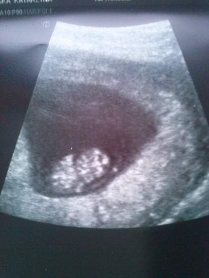Przedstawiem Wam nasze 1,93cm szczęścia. Ma pięknie mrugające serduszko :-) Wszystko jest w najlepszym porządku, ufff