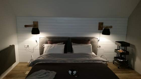 a tu jeszcze nasza sypialnia po wczorajszym montażu bielonych desek na ścianie za łóżkiem: