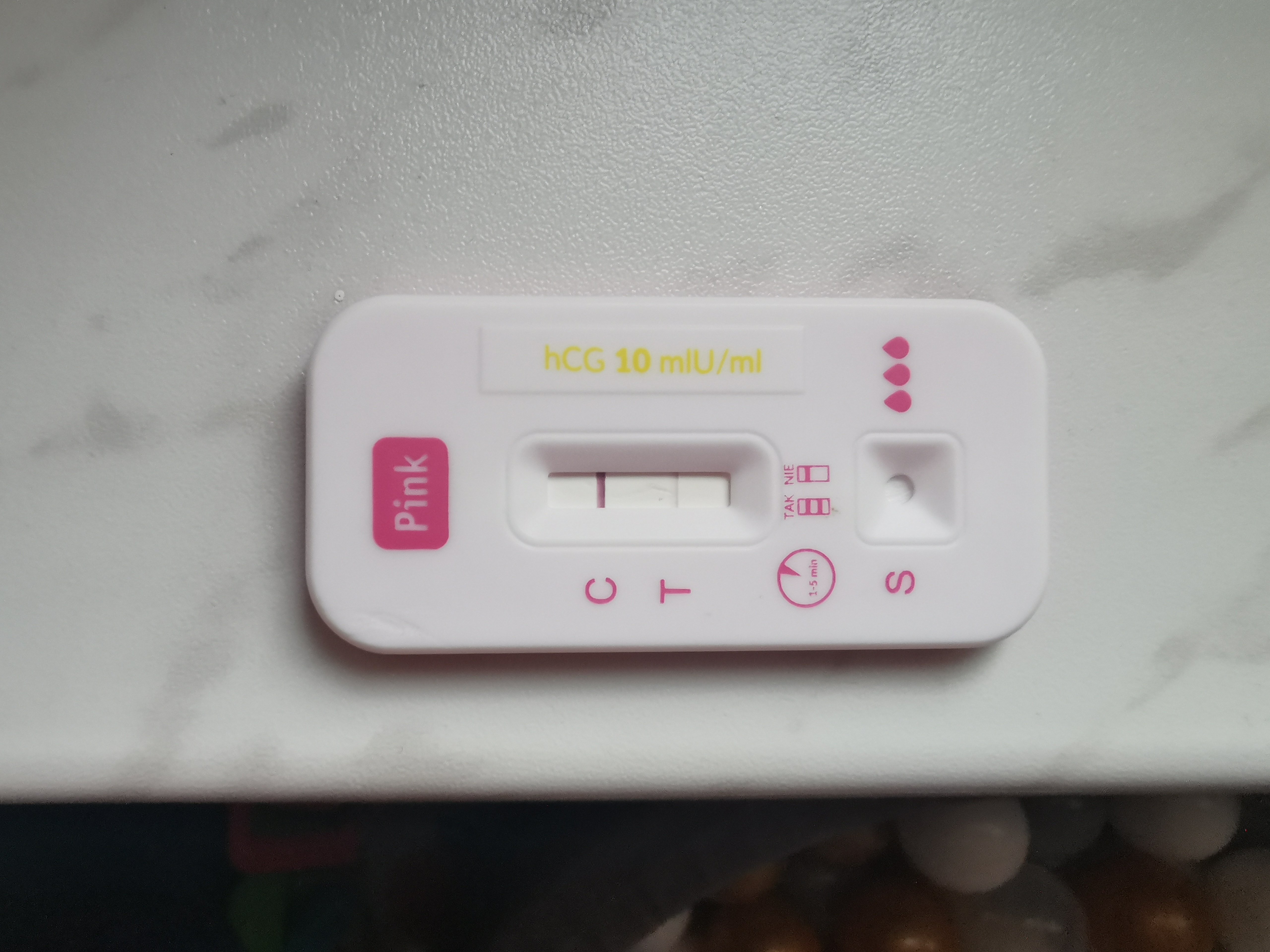 Ostatnia miesiączka 26.05, owulacja prawdopodobnie 12.06, testowanie 27.06 zdjęcie w załączeniudo lekarza wybieram się dopiero 23.07.