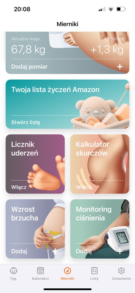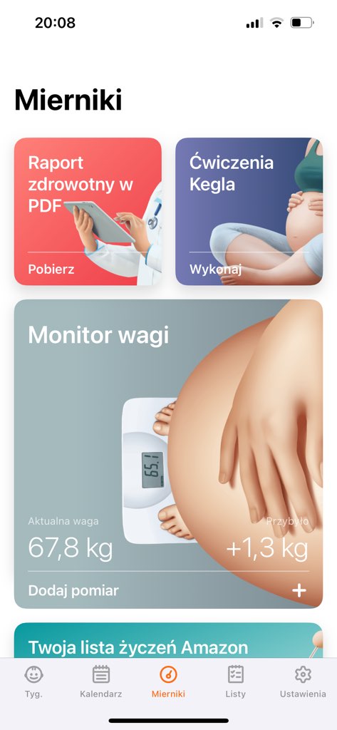 To polecam Pregnancy TrackerJa mam Preglife i ciaza+, w ciaza + lubię te rozmiary dziecka wg słodyczy, zwierząt i owocówale poza tym mi jakoś ta aplikacja nie leży z wyglądu, wole Preglife. Ale może potestuje jeszcze inne bo faktycznie chciałbym gdzieś wpisywać ciśnienie