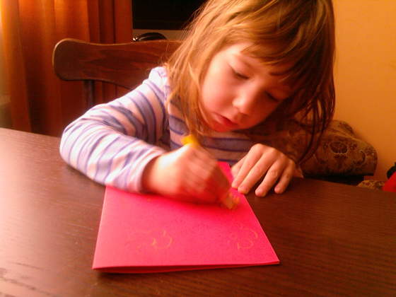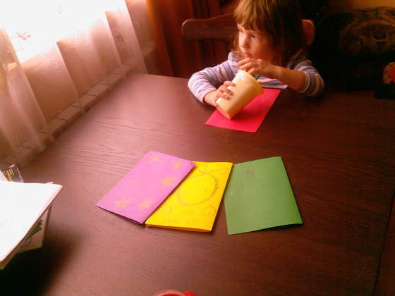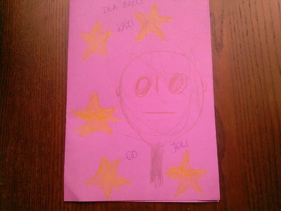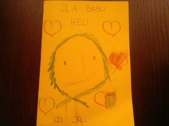 a z okazji dzisiejszego święta Jola rozdała babciom kartki, na których je narysowała ... te serca i gwiazdki to sama kolorowała