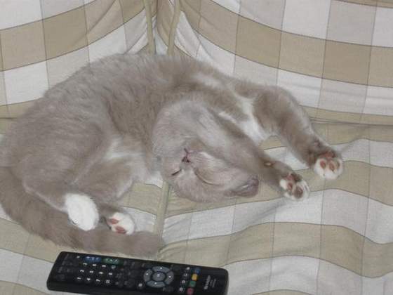 Teraz już woli pozycje bardziej na plecach, na żabkę - z rozłożonymi nogami. Leży i wietrzy futro :-)