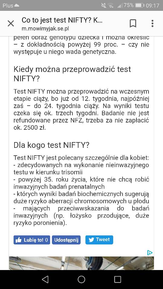 Jak sie dowiesz daj znać tak z ciekawości,ja wszystko w tamtym roku miałam darmowe,ale właśnie nifty proponowali mi za 2,5 tys. Zycze nam wszystkim zeby wyszło wszystko dobrze, bo zadna kobieta nie zasluguje na złe wieści związane z jej dzieckiem. Wzajemnie miłego dnia.Tak mnie poinformowała pani przez telefon (może była jakaś nowa) nie będę się kłocić, dowiem się jak pojadę.