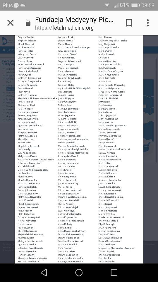 MTen ma dobry sprzęt on robi tez prenatalne, mierzył szczegolowo wszystko. A tamten wczoraj na nfz to potwierdził tylko,ze jest ginekologiem do d... bo jak w tamtym roku nie widzial obrzeku u dziecka a inny widział tak teraz nic nie dostrzegl. Powiedzial mi tylko,ze go to nie pokoi i na razie czekamy. Dziecko jest zbyt przyklejone do scianki nie jest jakby w pecherzyku po srodku wiec pewnie efekt bedzie taki,ze jak bedzie roslo coś sie odklei. Zobaczymy za tydzien co to bedzie,ale ja mam najwidoczniej pecha. Już trzeci raz bede jechała na usg w ciągu trzech tygodni. W pracy teraz sie dowiedza,ze w ciazy jestem ,a jak sie cos stanie bede musiala wrócić. Jakos czarno to już widze wiem,ze powinnam myslec pozytywne, ale jakos watpie w pozytywy tutaj