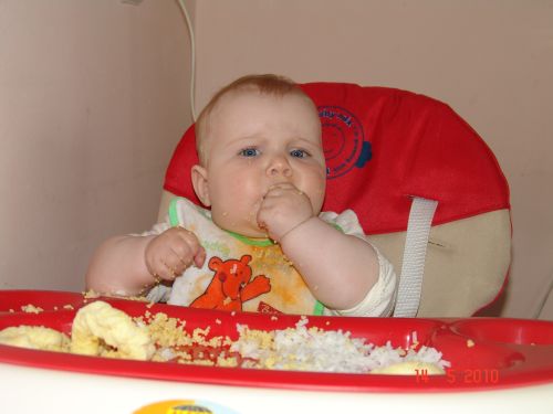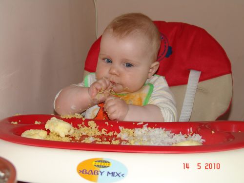 Ryżu dziś nie rozgotowałam, był bardziej sypki a i tak Joasia nie zakrztusiła się ani razu.