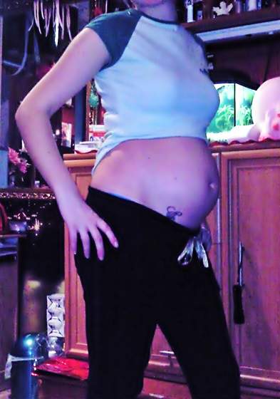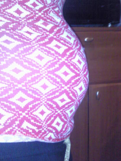 Ewuś - ale fajnie Ci pępek juz wypchało;-)