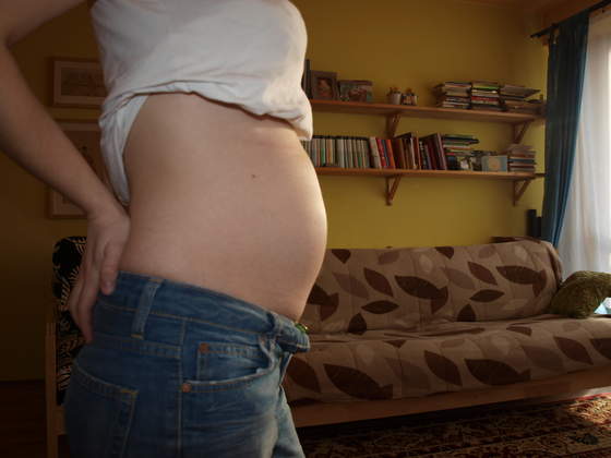 mini widac ze brzuszek , rosnie ale nie moge sie nadziwic ze taka chudziutka jestes, i caly czas chyba w swoich spodniach chodzisz