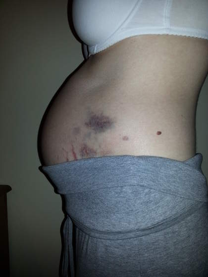 Ja jak siedzę i patrzę na brzuszek i mówię do dzidzi to wcale nie widzę ani tych siniaków ani rozstępów, bo na szczęście są po bokach i na dole gdzie mój wzrok nie sięga