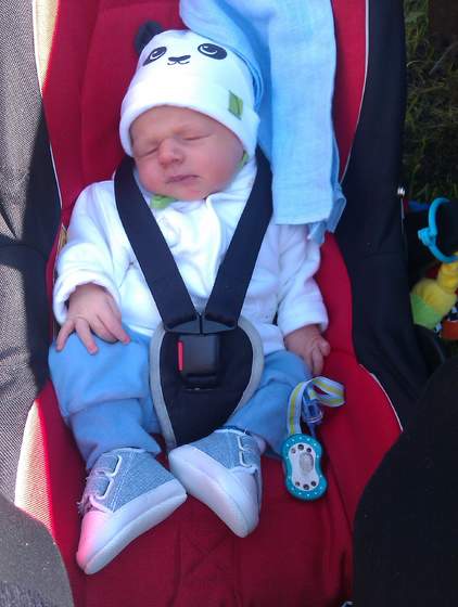 a to mój Skarb największy. A tak a propo`s, czy nie miałyśmy zrobić zdjęcia w czapie pandy jako znak zakupoholiczkowych kwietniówek?! W takim razie ja zaczynam. Śpiąca panda w foteliku... :-)