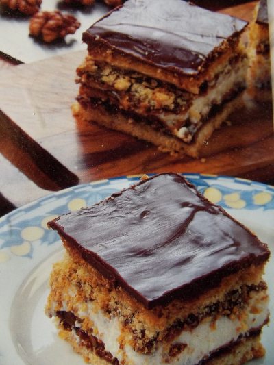 - lub przyłożyć drugim plackiem obróconym pianą do dołu, a wierzch polać gotową polewą czekoladową.