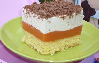 Tą warstwę wykładamy na zimną warstwę kubusiową.Na wierzch ścieramy na tarce czekoladę Ciasto przechowujemy je w lodówce.