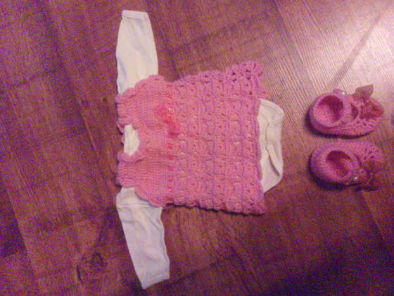 chciałam się pochwalić moja pierwszą sukienusią. Nie jest to ideał ale olejne mam nadzieję będa lepsze. Tą chyba jednak musze podłużyć