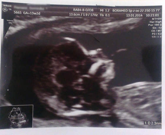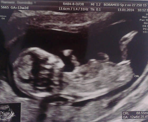 Z maluchem wszystko dobrze. Myślałam, że mi serce wyskoczy w poczekalni, ale jak już położyłam się na łóżko wyłączyłam mózg i po prostu patrzyłam. Małe fikało po brzuchu, tak, że lekarz musiał się nieźle nagimnastykować, żeby wszystko dobrze wymierzyć