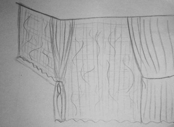 Mojemu mężowi też bardziej podobał się szkic z krótką firanką niż z długą, tak jak proponowałaś.