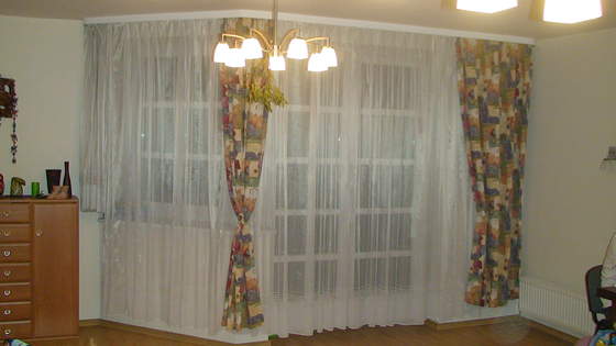 Ale chyba zdecyduję się na długą firanę na całości... jakoś nie mogę sobie wyobrazić jak połączyć te dwie firany (długa i krótką) biorąc pod uwagę, że nie są one w jednej płaszczyźnie