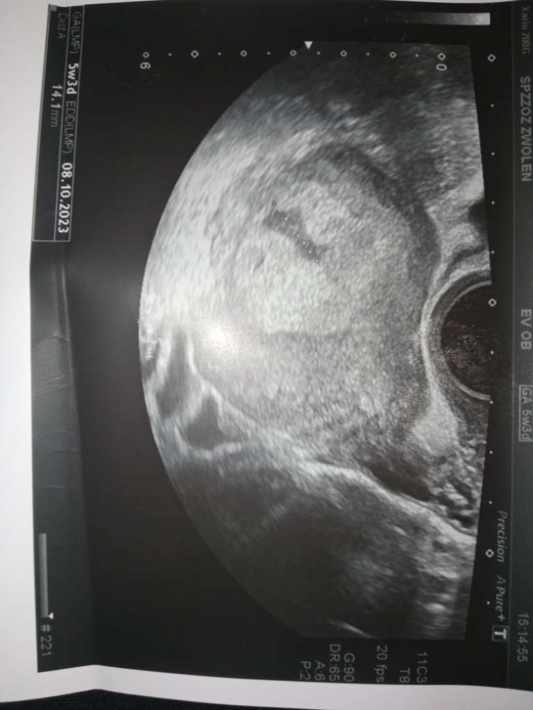 Cześć byłam dziś na wizycie u ginekologa wyszło że jestem jakoś w 5 tyg i 3 dni, lekarz zobaczył na USG taką jakby zatoczkę jest ona na pierwszym zdjęciu i przepisał mi duphaston bo uważa że to łożysko się zaczyna odklejać... Kazał się oszczędzać, będzie ciężko patrząc na to że mam dwuletnie dziecko w domu. Powiedziałam mu też że mam bóle podbrzusza. Wiem że nie jesteście lekarzami, ale na tym USG serio to tak wygląda ? Chodzi o tą jakby plamkę co jest pod tym całym łożyskiem, boje się że coś się stanie.