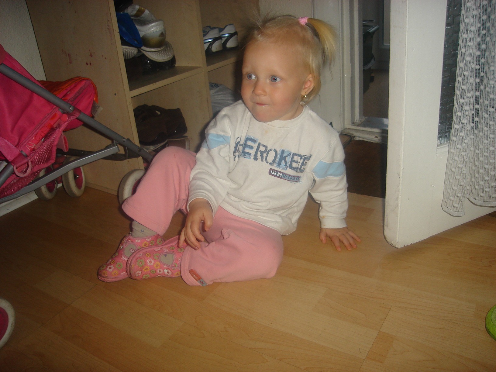 boso no oca emi nie chodzi boso bo mi sie wydaje ze zimno ja niecierpie chodzic boso i malej tez zawsze zakladam kapcioszki a tak prezentuja sie na nóżce emi babcia jej takie przywiozla z PL
