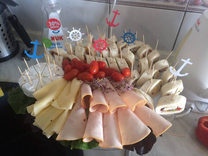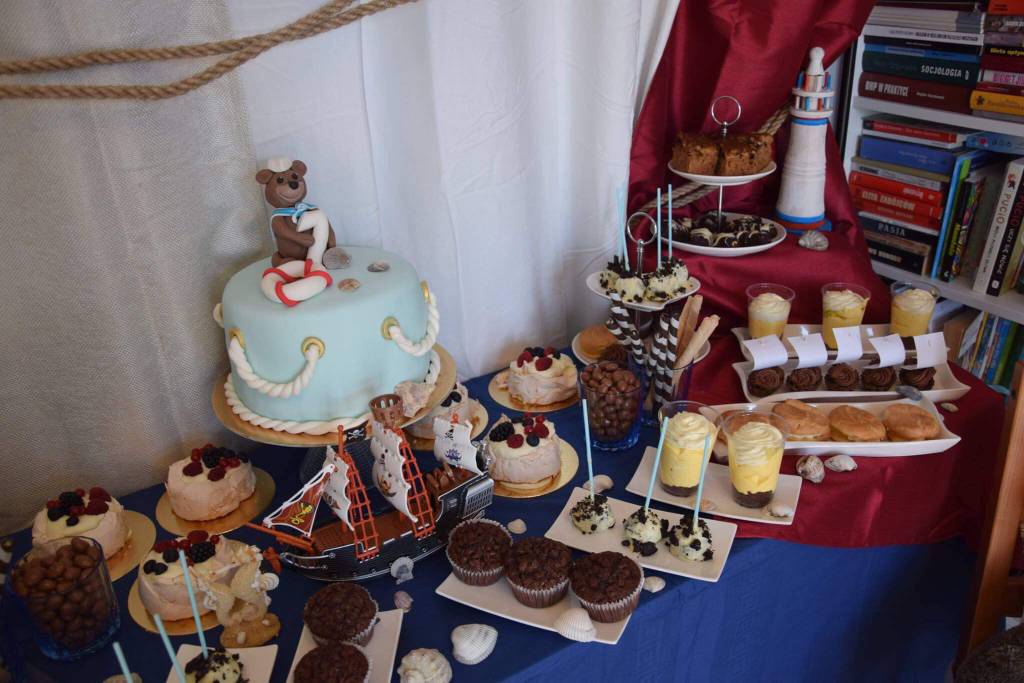 Stol wyglądał przepięknie, nie mam zdjęć ale bylo konfetti i muszle rozsypane, balony, stalowy materiałowy obrus, wszystko w klimacie morskim. Wrzucę kilka zdjęć ale jakis sałatek itp. Nie fotografowalam bo niezbyt mialam czas.