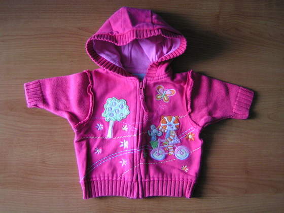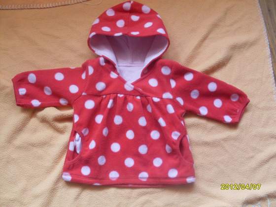 Czerwoną bluze w kropki kupiłam za 6,99 + 5 zł za wysyłkę.Rozmiar 68.