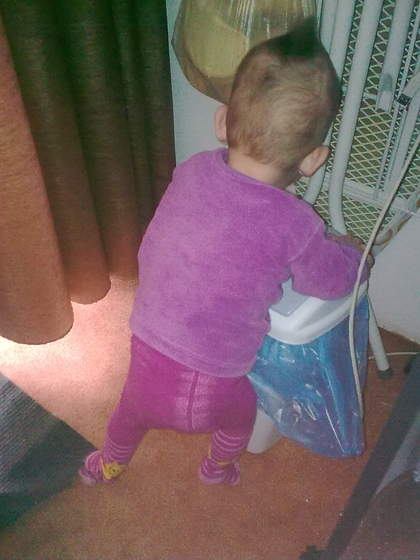 Agnieszko, na potwierdzenie wrzucam zdjęcia, dziś od rana dziecko zdobywa każdy kąt teraz padła i spi, tak się wymęczyła. O 10 jadła juz pierwsze danie obiadowe Chyba nadrobimy dziś z jedzonkiem :-)