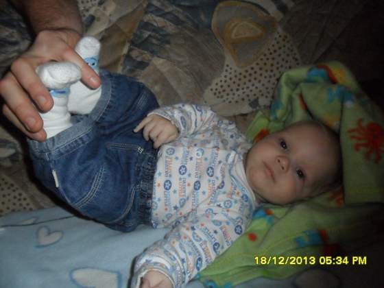 Najbardziej też lubi jak się ją "stawia" na nóżkach - oczywiście stać nie może, więc delikatnie się nimi opiera a jej ciężar trzymają moje ramiona. Śmieje się wtedy strasznie, ale moje ręce nie wytrzymują.