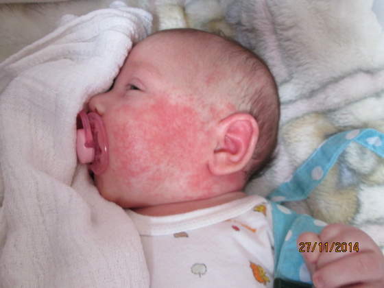 Dzis zauwazyłam ze jej p[ekła skóra za uchem,ma bardzo przesuszoną małzowine i skóre głowy,ciemieniuche na brwiach i te czerwone placki na policzku.Niwiem co to jest.Dr mówi ze łojotok