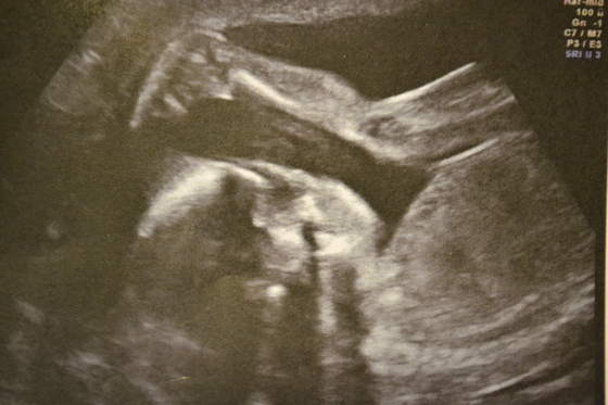 ), bo miał niedobrą do tego badania pozycję i uparciuch nie chciał się ruszyć - tylko co jakiś czas mnie kopał. Z resztą zobaczcie same jak młody leży: