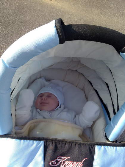śpi na brzuchu, ale musi spać już głęboko żeby udało sie go tak na śpiocha przenieść...