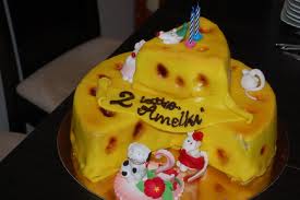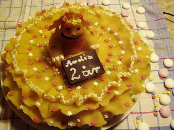 - i częstujemy Was torcikiem. Troche za żółty wyszedł ten marcepan na zdjęciu, ale nie chcialo mi sie z lampą robic i pewnie dlatego...Ciasto nawet sie udało, nie opadło i sie nie spaliło, więc choć tyle dobrze;-)