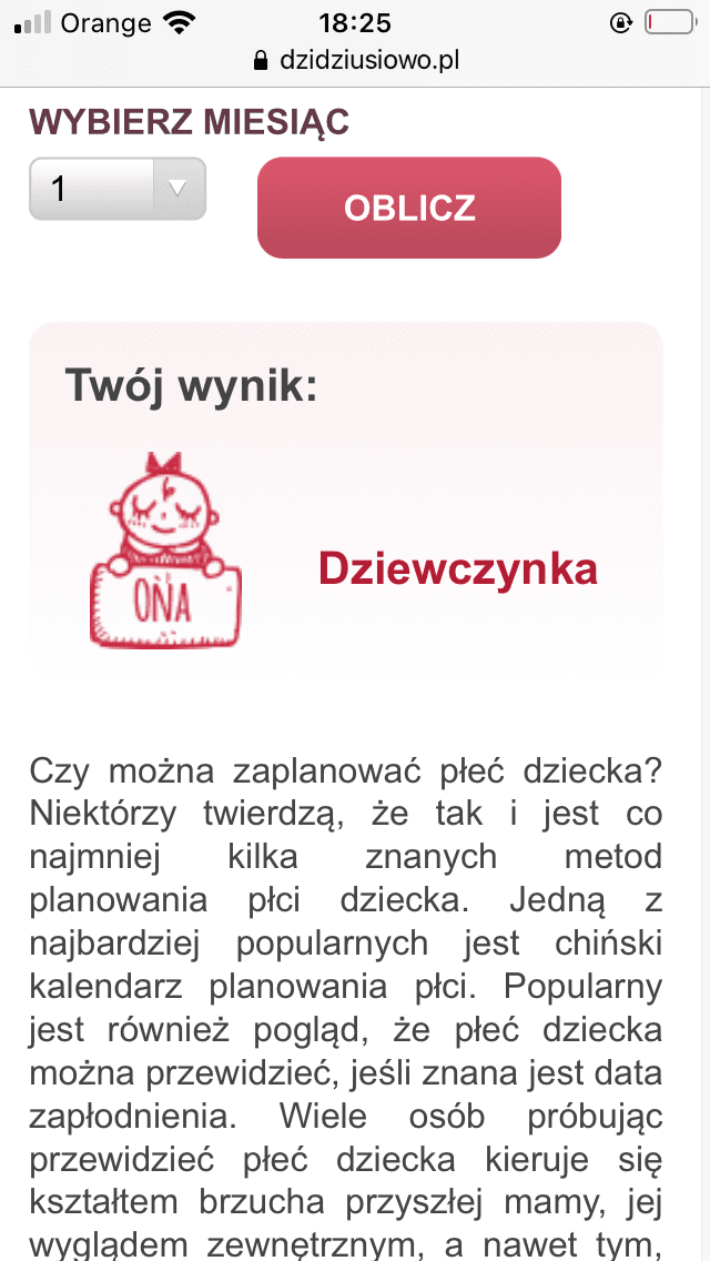 U mnie wychodzi dziewczynka. W pierwszej pokazywało chłopca i faktycznie mam synaWedług internetowego kalendarza każda co ma termin na październik powinna mieć chłopca.Więc ciekawe jak oni to sprawdzają jak bliźniaki się trafia