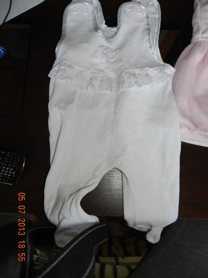 2. białe śpiochy nie mam pojecia jaki rozmiar bo nie ma m etki ale wygladaja na jakies 68/74 (3zl)