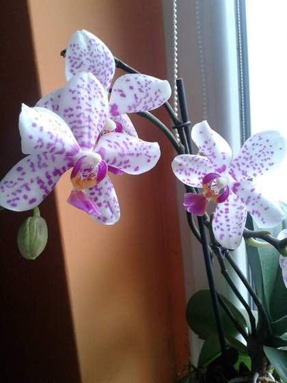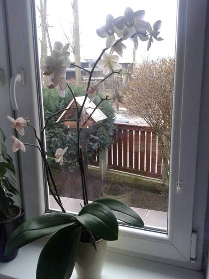 Zazdroszcze ręki do kwiatów, u mnie wszystkie padają po tygodniu. Dostałam ostatnio gerbere w doniczce- ledwie zipie! Dostałam fiołka alpejskiego i już żółkną mu liście. Wydaje mi sie,że dobrze je podlewam a i tak umierają :-/ .... Twoja Orhidea wyglada za to kwitnąco.