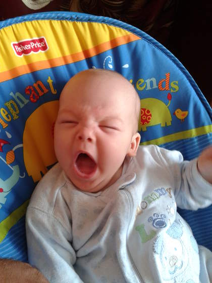Synuś był bardzo grzeczny i towarzyski, z czego się ciesze. Wieczorem było cycuś i spanko. Obudził sie dopiero ok 3 bo alarm przeciwpozarowy sie włączył u nich w budynku, ale dostał cycusia i spał dalej:-)