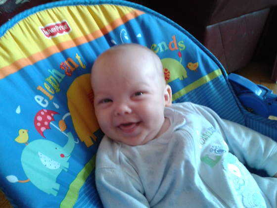 Synuś był bardzo grzeczny i towarzyski, z czego się ciesze. Wieczorem było cycuś i spanko. Obudził sie dopiero ok 3 bo alarm przeciwpozarowy sie włączył u nich w budynku, ale dostał cycusia i spał dalej:-)Ja czuje się nawet wyspana- piłam tylko herbatkę, gorzej z tatą