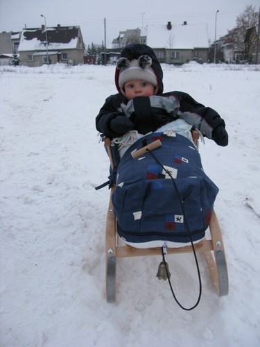Ja zamówiłam sanki na roczek. Staś zwykle na spacerach nie śpi, tylko jest bardzo pobudzony i ciekawy, więc w sankach tym bardziej mu się podoba. On ma stałe pory spania i ja sobie to tak ustawiam, żeby spał w domu, bo wtedy mam trochę czasu, żeby coś zrobić. A wychodzę jak jest aktywny i w dobrym humorze, bo wtedy łatwo daje się ubrać i jest zaintesresowany wszystkim naokoło.