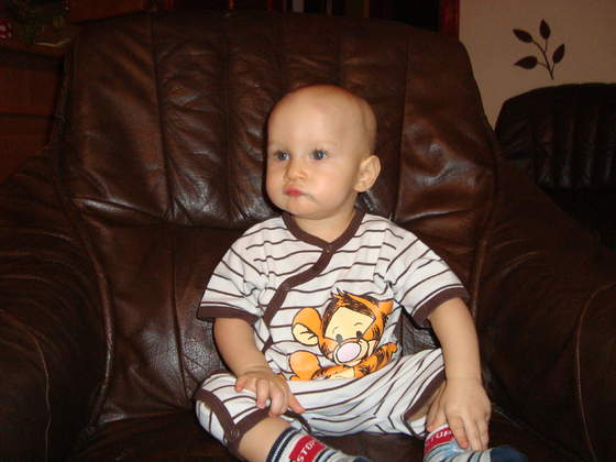 Davidek sam dziś wstał i przeszedł cały pokój a potem calutki dzień na dwóch nóżkach tylko do zabawy w chowanego wrócił do raczkowania,bo szybciej mógł uciekać