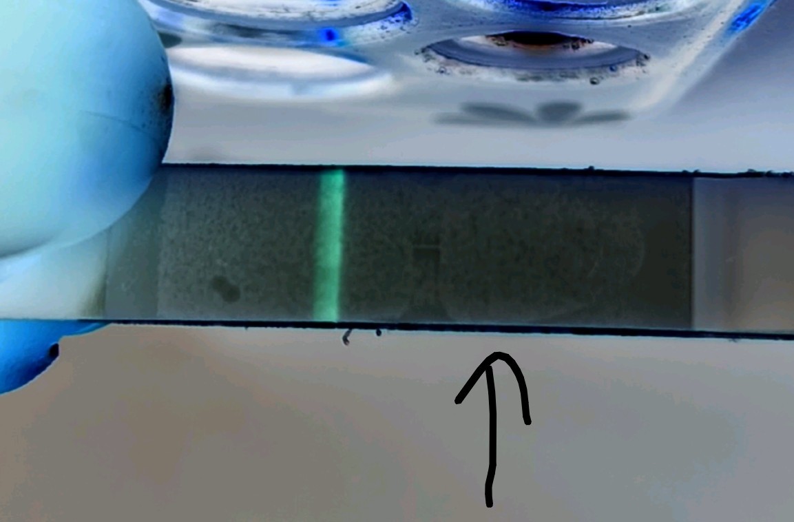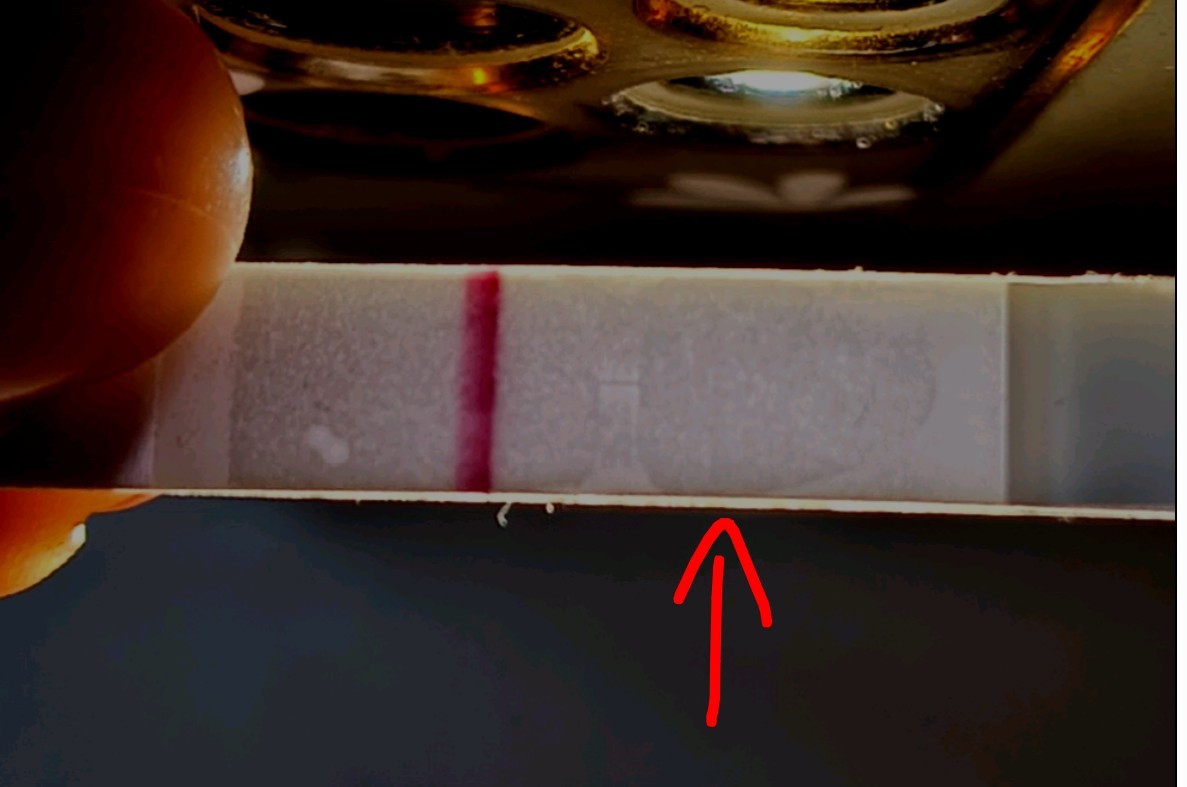 Nic tam nie ma. Testów się nie rozbiera i nie podświetla. Jak ma wyjść kreska to wyjdzie. Poczekaj do dnia miesiączki i wtedy zrób test.
