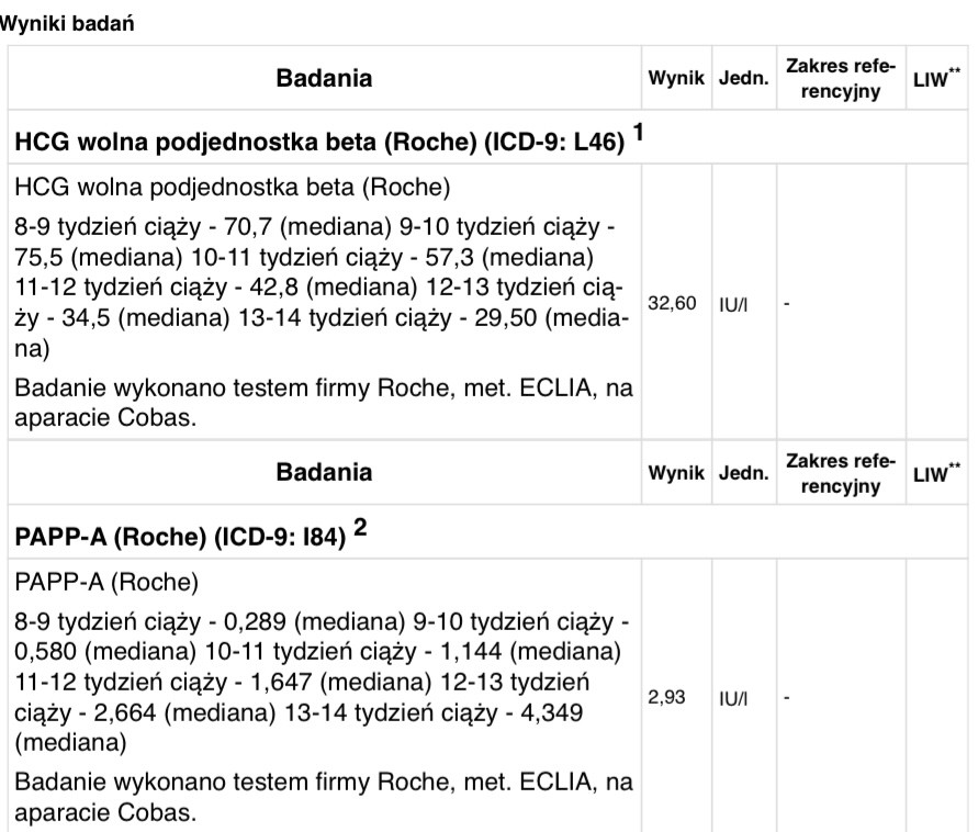 Nie da się nic stwierdzić z tych wyników. Lekarz musi je przeliczyć. Poczekaj spokojnie.Dziewczyny wizyta u lekarza za 2 tygodnie, wczoraj miałam pierwsze prenatalne. Z USG wszystko dobrze, ale nie potrafię rozgryźć tematu krwipomóżcie czy wszystko dobrze