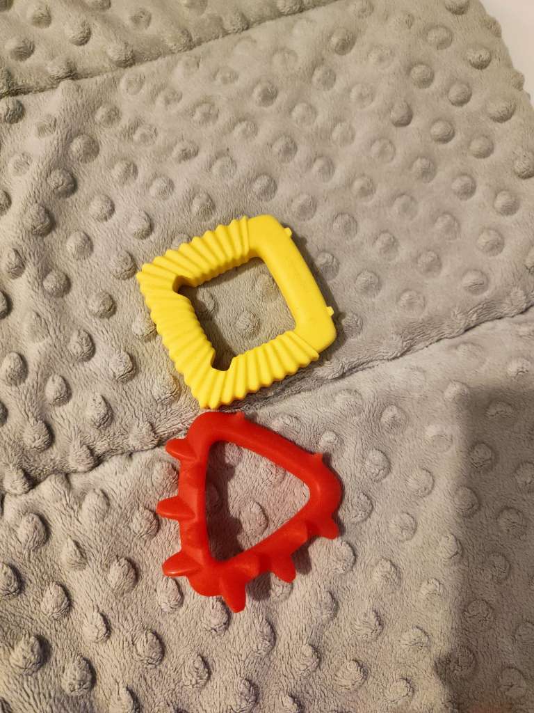 rzucona w kąt przez moje dziecko po pierwszym przyjrzeniu się. Dla mnie to pretensjonalny bubel, kilkadziesiąt złotych za gryzaka, bo ma z boku jakiś napis? Najlepiej bawiła się gryzakami ze zwykłego silikonu po 30 zł za trójpak.Piszesz, że gryzaki nie, ale może taki porządny typu oryginalna żyrafka Sophie? Uwielbiana przez dzieci i bardzo elegancka.