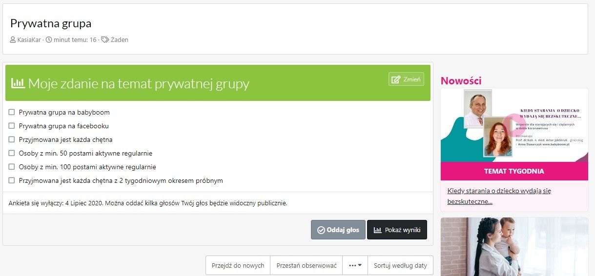 Każda z Was może oddać dwa głosy, jeden na miejsce powstania grupy a drugi na kryteria przyjmowania.
