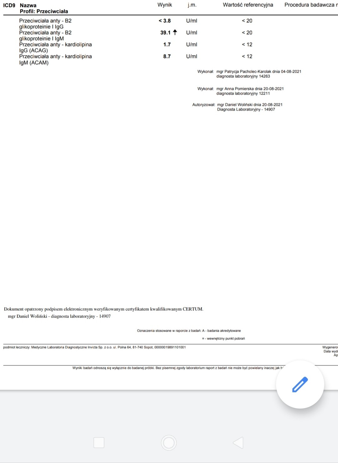 Te badania robilam 2.5 tyg po poronieniu czy to dobry okres na to badanie ?Wreszcie coś Ci wyszło! Dostałaś już wynik antykoagulantu toczniowego? Interpretacje i diagnozę musi postawić hematolog, ale jak się to zestawi z Twoim poronieniem, to może wychodzić na to, że miałaś w ciąży zespół antyfosfolipidowy, który powoduje powstawanie zakrzepów.