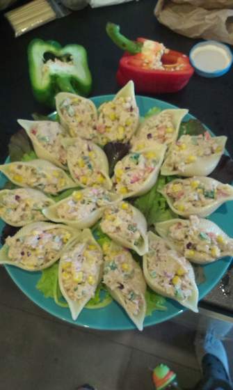 Jeśli chodzi o przekąski to ja często robię makaronowe muszle wypełnione "czymś", jakąś sałatką. Np. tuńczyk + papryka + kukurydza (oczywiście z majonezem). Podrzucam zdjęcie robione na ostatnia imprezę (jeszcze bez posypania koperkiem). :)